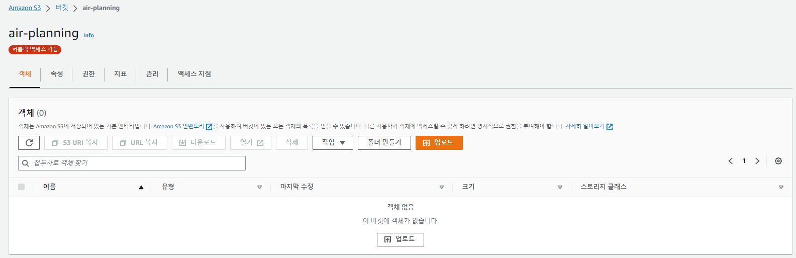 S3-버킷 페이지에서 원하는 버킷의 이름을 클릭한 후,